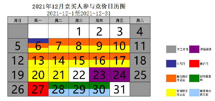 缴付竞价保证金:12月6日、12月7日、12月8日、12月9日、12月10日、12月13日、12月14日、12月15日、12月16日、12月17日、12月20日、12月21日